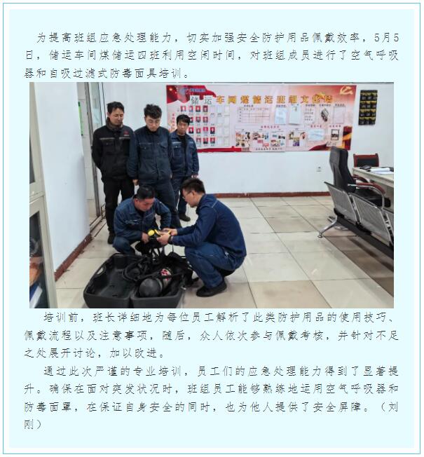 儲運車間開展空氣呼吸器和過濾式防毒面具培訓(xùn)