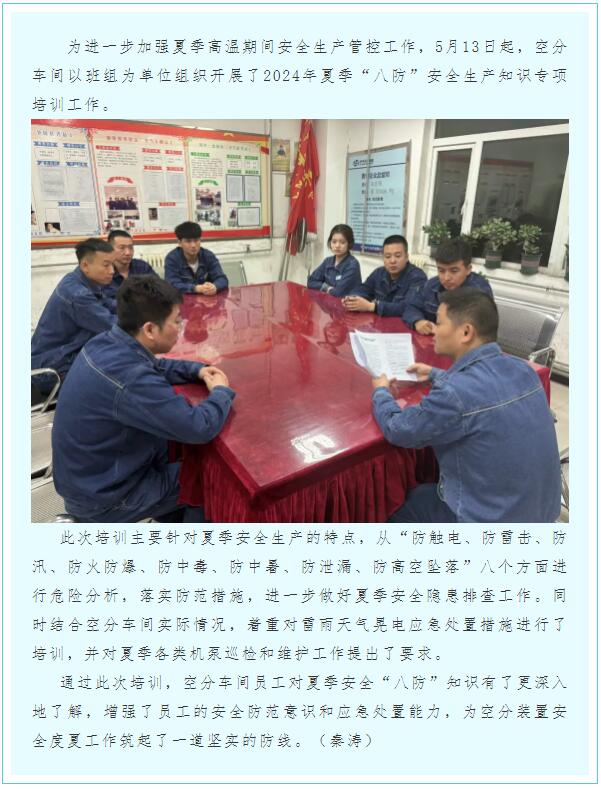 空分車間組織開(kāi)展夏季“八防”培訓(xùn)