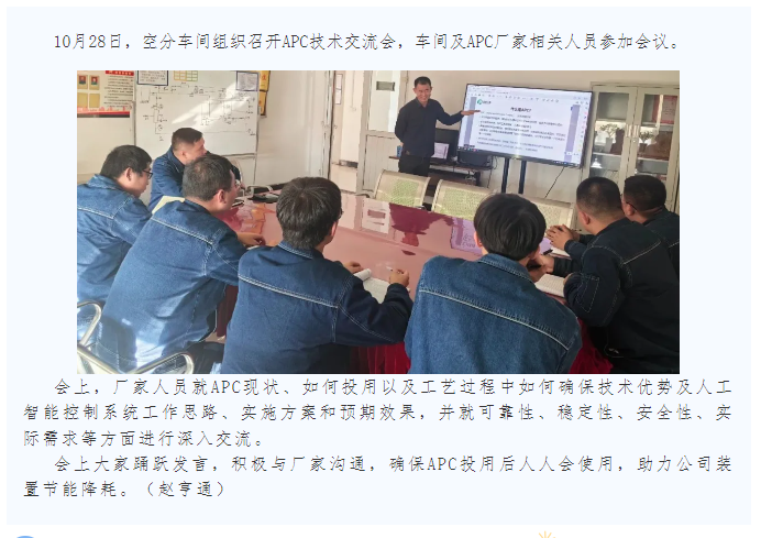 空分車間與APC廠家人員進行技術交流