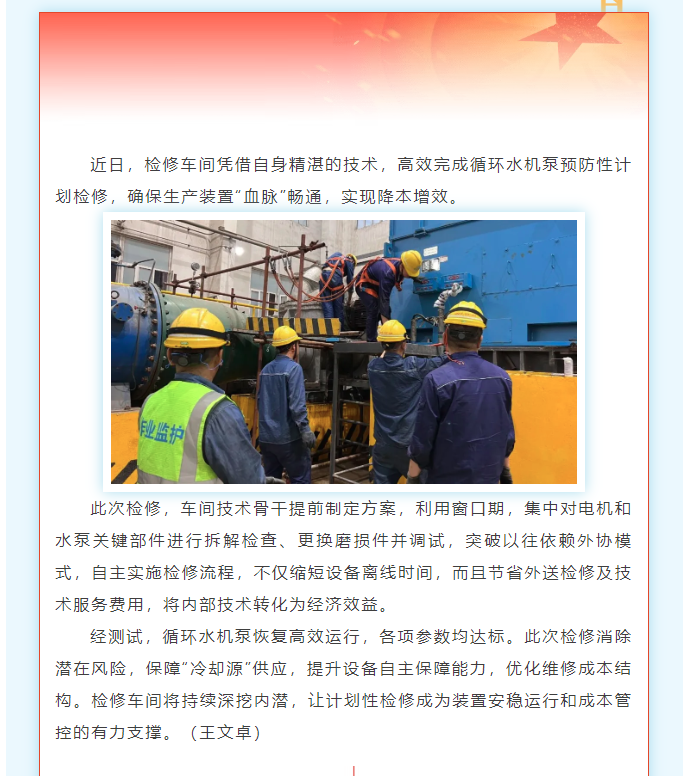 檢修車間巧施內功,循環水機泵煥新穩運行