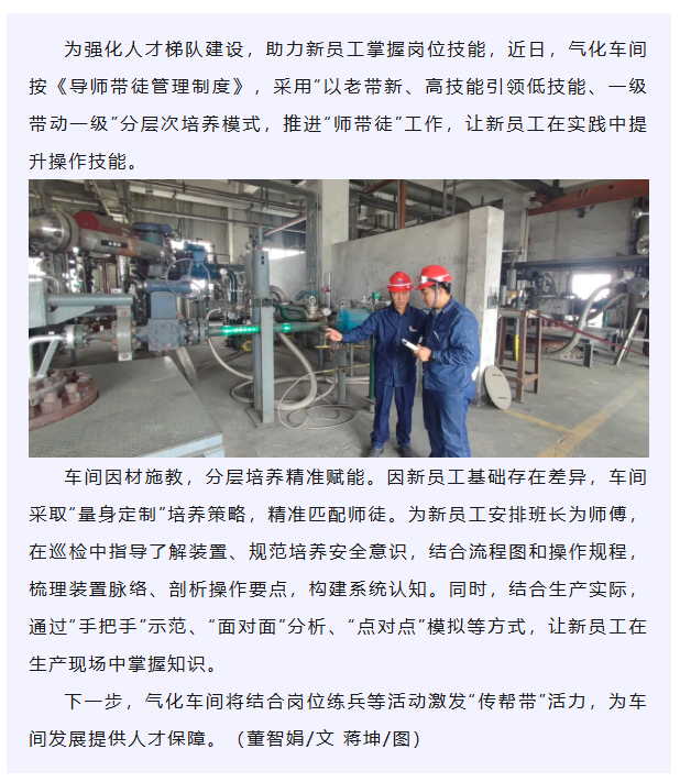 氣化車間創新開展分層級“師帶徒”工作助力新員工快速成長