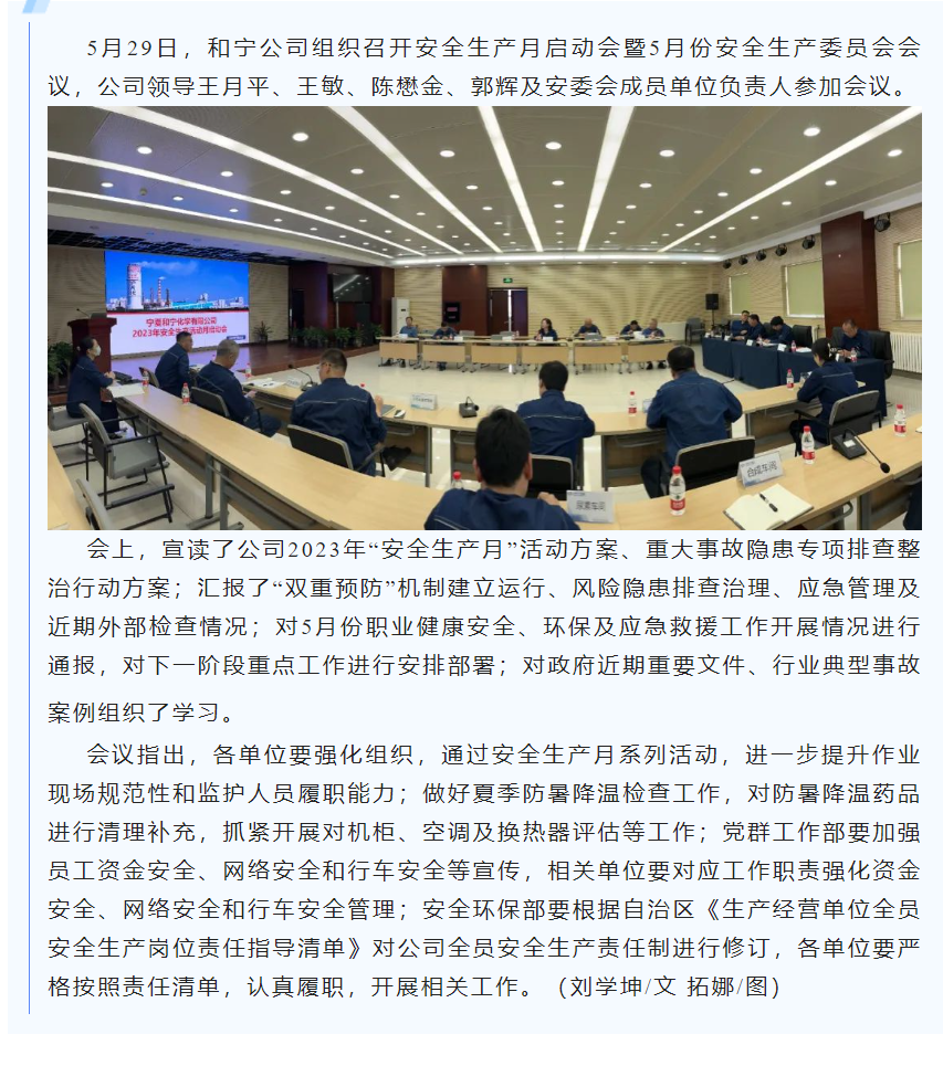 和寧公司召開安全生產(chǎn)月啟動會暨月度安委會