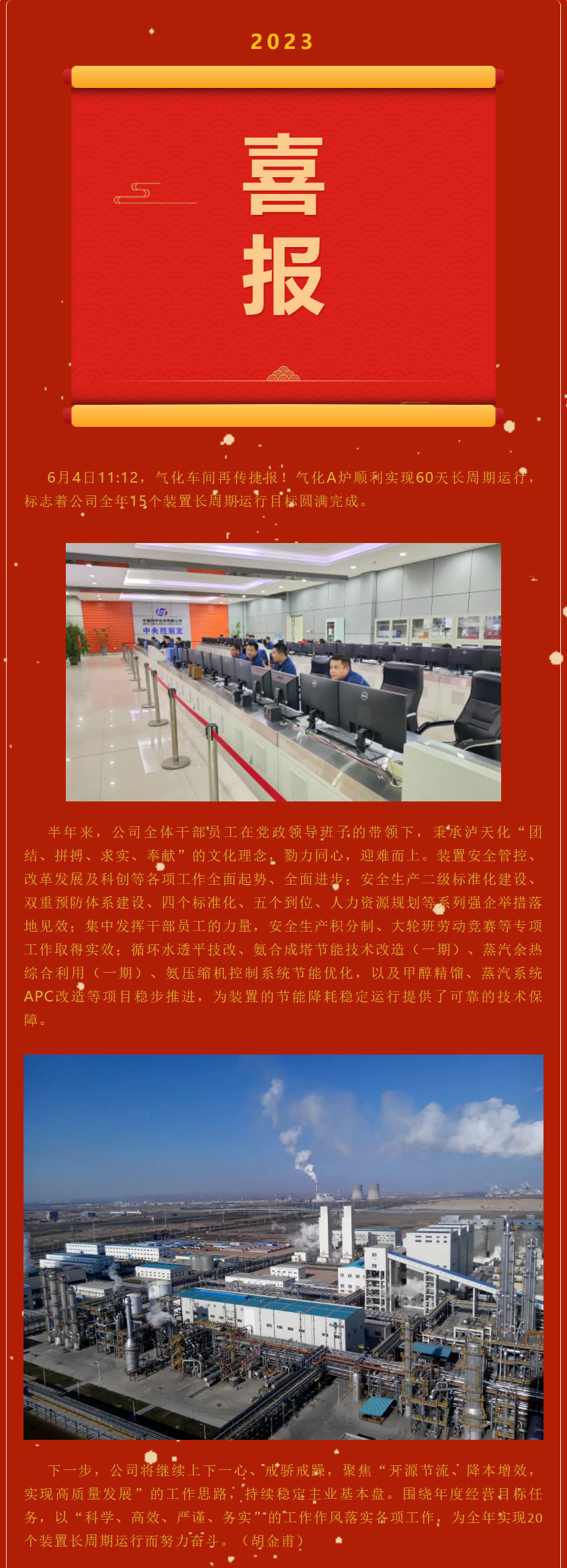 捷報!公司完成全年15個裝置長周期運行目標任務
