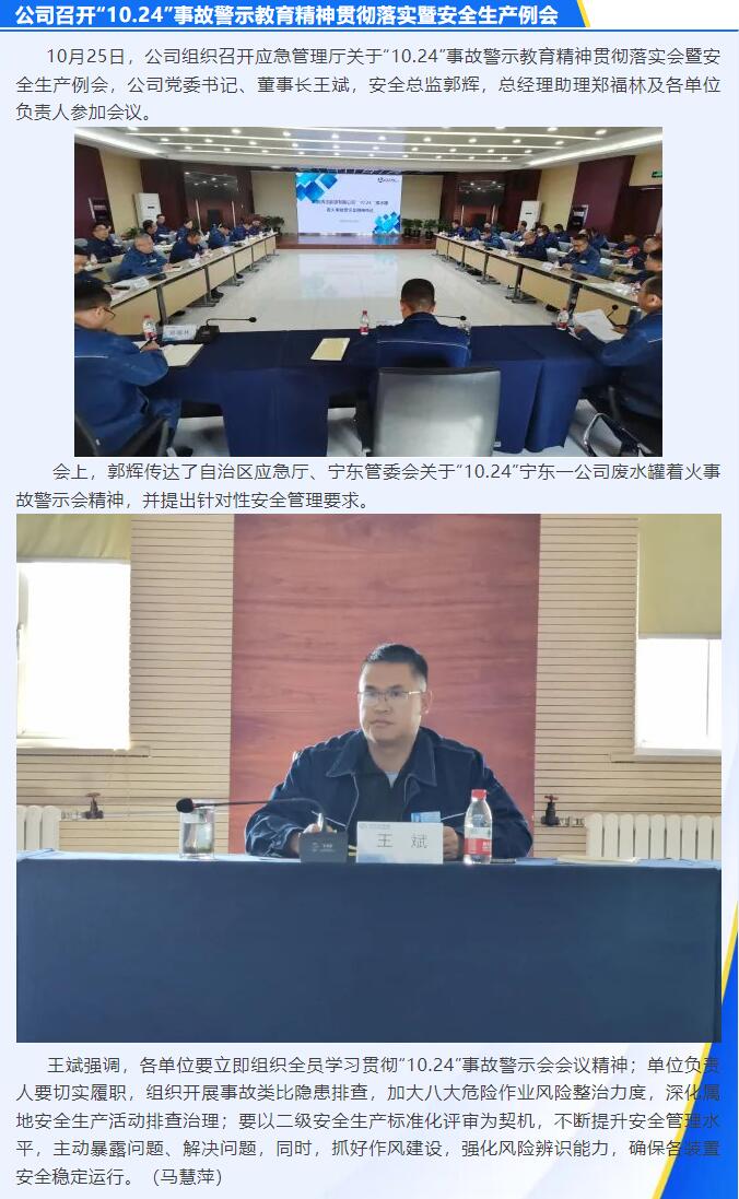 公司召開“10.24”事故警示教育精神貫徹落實(shí)暨安全生產(chǎn)例會(huì)