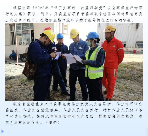“保衛(wèi)安環(huán)線,攻堅(jiān)四季度”外委監(jiān)督項(xiàng)目管理部在行動(dòng)