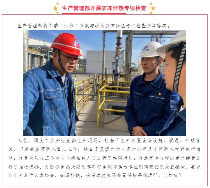 生產(chǎn)管理部開(kāi)展防凍伴熱專(zhuān)項(xiàng)檢查