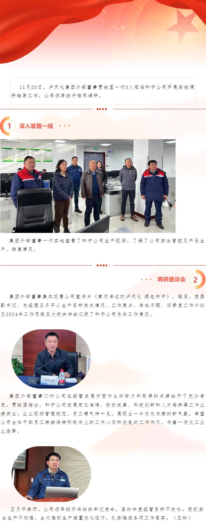 瀘天化集團外部董事蒞臨和寧公司調研指導