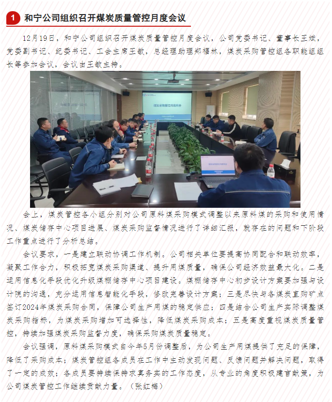 和寧公司組織召開煤炭質量管控月度會議