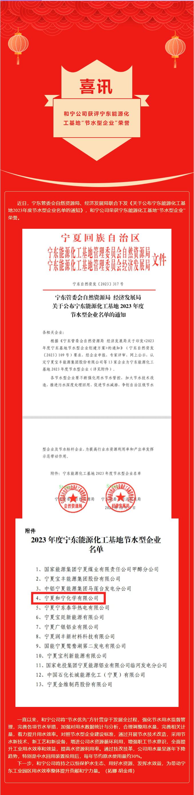 喜訊!和寧公司獲評寧東能源化工基地2023年度“節(jié)水型企業(yè)”榮譽