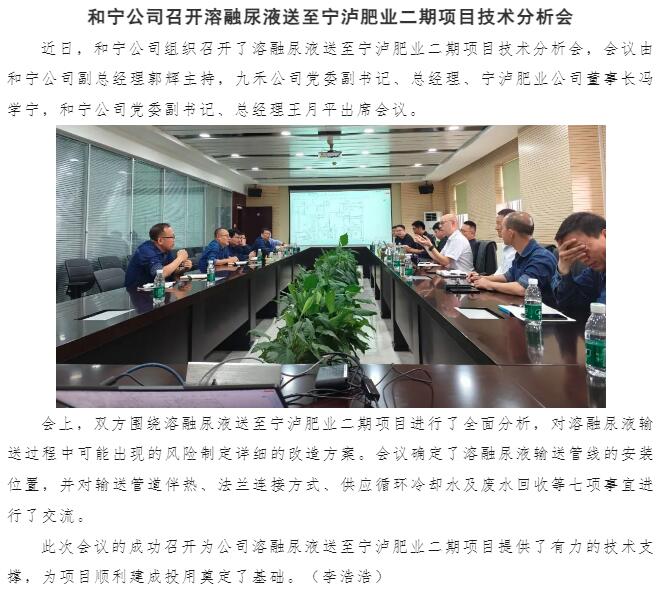 和寧公司召開溶融尿液送至寧瀘肥業二期項目技術分析會