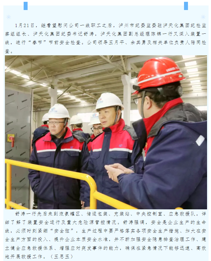 瀘天化集團領導到公司進行“春節”節前安全檢查