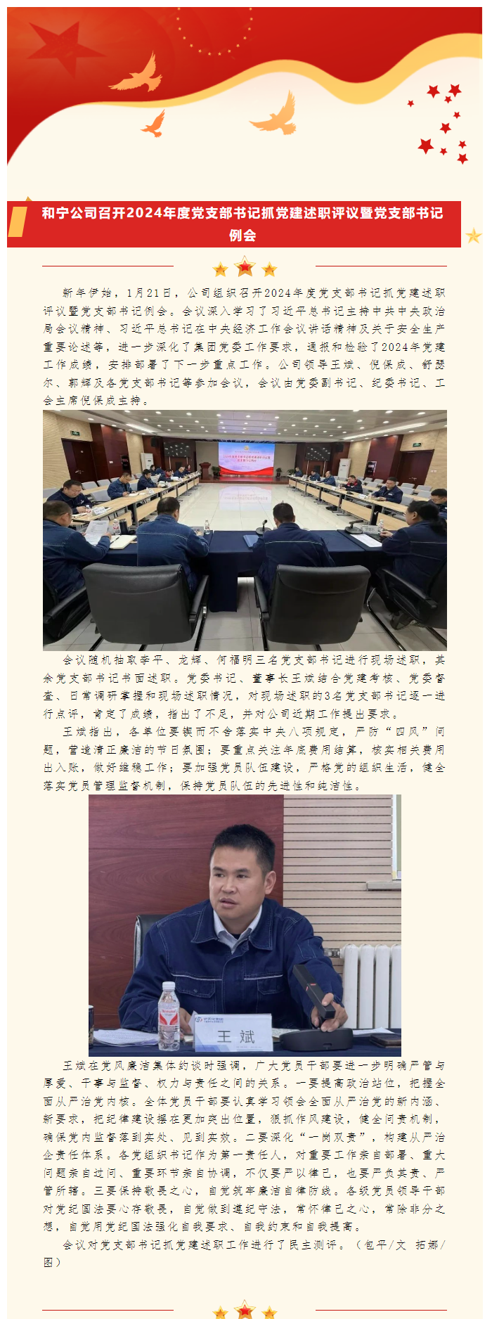以“述”明責 以“評”促干 | 和寧公司召開2024年度黨支部書記抓黨建述職評議暨黨支部書記例會