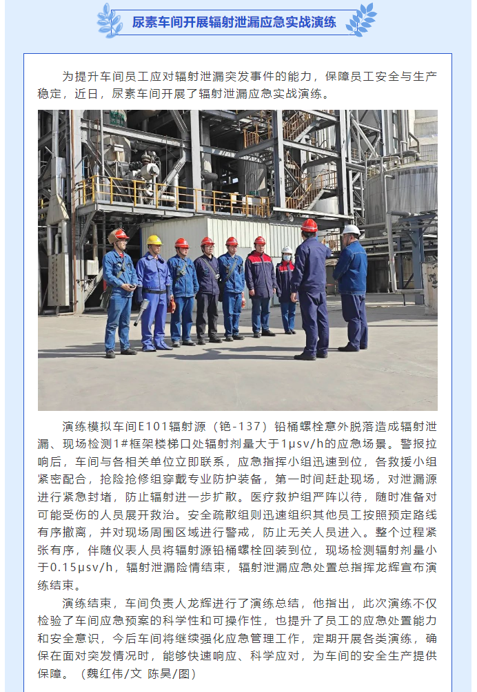 尿素車間開展輻射泄漏應(yīng)急實(shí)戰(zhàn)演練