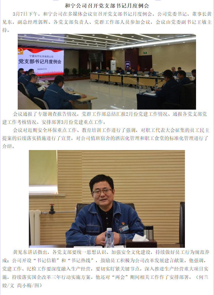 和寧公司召開黨支部書記月度例會