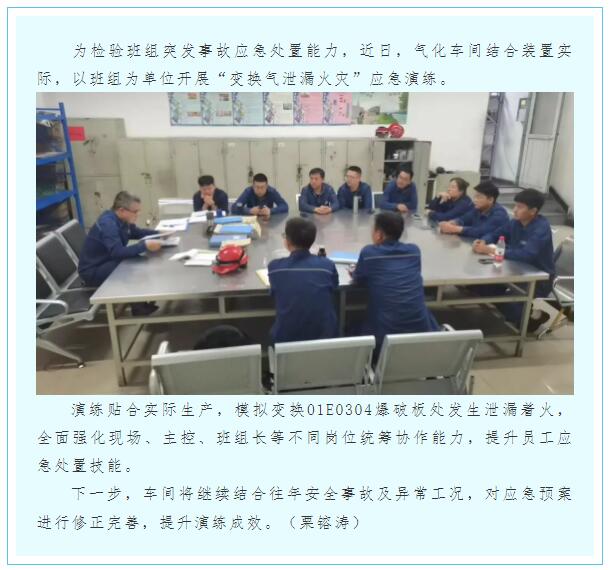 氣化車間開展“變換氣泄漏火災”應急演練