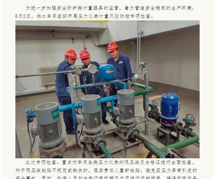供水車間開展壓力儀表計(jì)量風(fēng)險(xiǎn)防控專項(xiàng)檢查