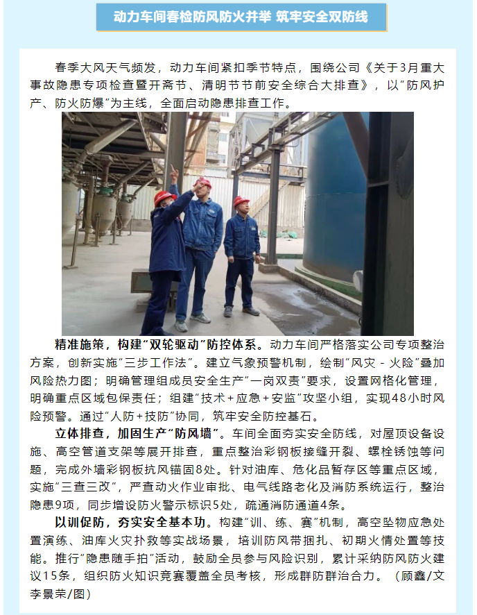 動力車間春檢防風(fēng)防火并舉 筑牢安全雙防線